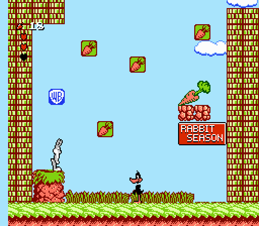 Not only is the game a cinch, there really isn’t a goal, per say, other than to collect obscene amounts of carrots. At the end of each level, you play a bonus game to get extra lives, and the amount of times you play are based on how many carrots you collect; other than that, the carrots serve no purpose. Like all early platformers, the game is really trying to emulate Mario – collect carrots instead of coins, destroy goofy lookin’ enemies, go down misshapen block chunks that resemble pipes – but what made Mario stand out was the level design. Here, the environments are wide open and boring. While there are some secret areas scattered about, they usually just revolve around getting more carrots. The game’s repetitive and can be boring, BUT!… for some reason, I found that my quest to collect all the carrots I could drove me further into the game than necessary. Perhaps I, like Bugs, had become addicted to what rabbit scholars call “orange crack.”