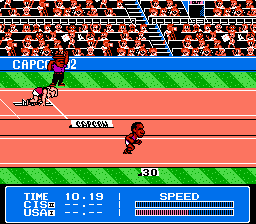 Choose to play as a variety of different countries and begin either training for the different events or jump right into the world tournament. This game is, at its core, a humble track-and-field game – push ‘A’ and ‘B’ really fast to win! – but it’s the little touches that make it memorable. If it’s not the goofy caricatures from each country, it’s that, despite how horrible you’re performing in the tournament, the games simply must go on. In other words, they won’t kick you out if you suck at certain events (this made me feel better during the swimming events). All of the events, whether they be the Long Jump, the 100 Meter Dash, Swimming, etc, have you pressing the ‘A’ and ‘B’ button with insanely fast precision and speed. Some include the ‘Up’ button, like the Long Jump. Despite the seeming simplicity, though, it would behoove you to peruse a FAQ; otherwise, you might not know what to press and when (though you will always need to press it fast). Perhaps the only point of contention that I have with this game is how precise you have to be with your button presses. Save yourself the wear and tear on your hands: buy a turbo controller. Sure, it’s cheating, but we retro gamers aren’t getting any younger and our hands are precious commodities! Despite my slightly overcooked beef, Capcom’s Gold Medal Challenge is charming, fun, and perfect for multiplayer. An underrated gem.