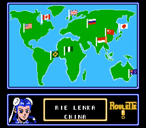 Casino Kid II‘s aesthetic changes are welcome. Instead of wandering around in a casino trying to find the right person to play with, you’re taken to a world map that lists the different people you have to “battle.” They’re ranked in order of difficulty from one to three chips below their name and picture, so there’s no second guessing who you should play against first. Once you beat a character, they’re crossed off the map and you move on. It felt like Sofel wanted to have an interesting story without all of the casino clutter; designing the look of several different casinos around the world probably wouldn’t have been in their budget anyway.