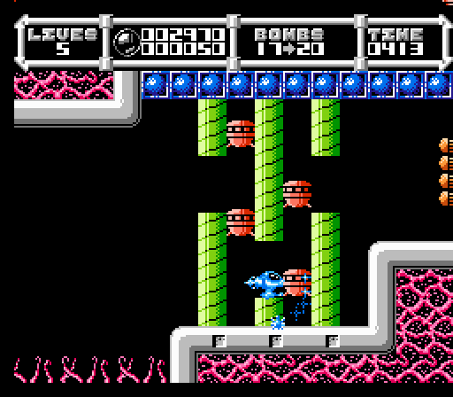 Cybernoid is like a dance between one partner who knows all the moves (the game itself) and one partner who’s stumbling along, trying to figure it out as they go (me and others like me). The game is a take-one-screen-at-a-time shooter, with scores of enemies trying to hinder your progress at every turn. The slightest clip of an enemy into your ship will destroy you, but don’t worry, you have nine lives to lose. Yes, you read that correctly: the game gives you nine lives, at least on the easy difficulty setting. There is no “Normal,” only “Easy,” “Hard,” and “Bats**t Crazy.” Why is Cybernoid so serious, you ask? Your ship isn’t exactly a quick vessel, so evasive maneuvering is out of the question. If left to its own devices, the ship will slowly lower itself onto the bottom of the screen, so you must constantly press “up” on the directional pad to keep it afloat. You have a pea shooter that spits out Pixie Stix. In other words, the game wants you to fail, and fail you will, time and time again. Despite my shortcomings, I still enjoyed Cybernoid‘s masochistic leanings. If you have the patience of a saint during a bitter Russian winter and you kinda sorta think you might want to learn to dance, I’d ask Cybernoid for a lesson. Just don’t be surprised when your foot gets crushed.