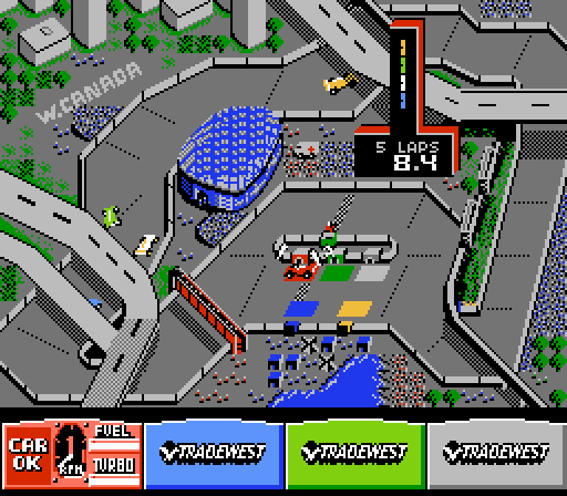 What if you woke up today and decided, out of the blue, that you wanted to be a NASCAR/F1 champion? Race fast cars, make lots of money, and get kissed by fake women once you win trophies, affectionately referred to as “the life.” You could do worse than to subscribe to Danny Sullivan’s Danny Sullivan’s Indy Heat. Instead of racing down a vertically-scrolling highway, as in most NES racers, Indy Heat gives you a top-down view of the race. By incorporating this view, your cars look like Micro Machines that you can easily lose because they’re just so darn micro. Fear not: said smallness actually enhances the game. It’s a joy to see six tiny cars travel around a tiny track, all battling for the position of glory, albeit in a tinier way. The controls are spot-on, as they should be for a game that rewards good driving skills; making tight turns feels relatively effortless. Before each race (there are nine races), you have the option of spending money to make your car go faster, brake better, have a quicker pit crew, etc. I recommend lots of turbos and upgrading your speed and pit crew. You don’t want to have to hire and train a bunch of new guys, do ya?! Better still: this game has four-player compatibility. Indy Heat needs to be experienced with three other people by your side. Even if you don’t make many upgrades to your car, your only real challenge in one-player is the yellow car a.k.a. Danny “The Iron Giant” Sullivan himself. So bust out some brews, a bunch of controllers, and some bountiful bundt cake, and you’ll have an amazing alliterative party even your future NASCAR champion self would be proud of.