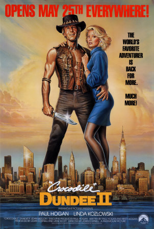 In 1989, Australian fever had hit America big time. “Crocodile Dundee” was a huge hit movie, Yahoo Serious was being taken seriously as a comedian, and Bayou Billy hits the NES. Now Bayou Billy technically isn’t Australian. In fact, the game takes place in New Orleans. Despite Konami’s original intent, look at the cover art, then look at this promo poster for “Crocodile Dundee II.”