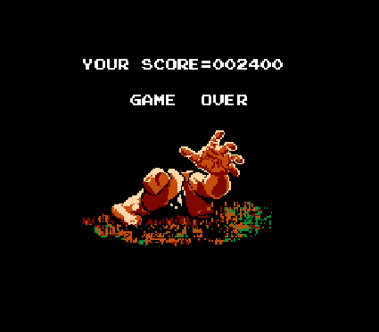 The game has a slew of options, at least for a NES game. Game A is your traditional Bayou Billy experience; Game B ups the difficulty a little bit, though I really couldn’t tell much of a difference; Practice Mode is like the game, but even more boring; and the Sound Test is a tour through the game’s breathtaking music. It’s not bad, but it is unnecessary.