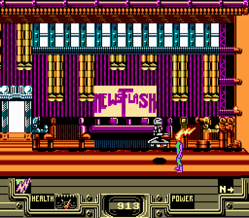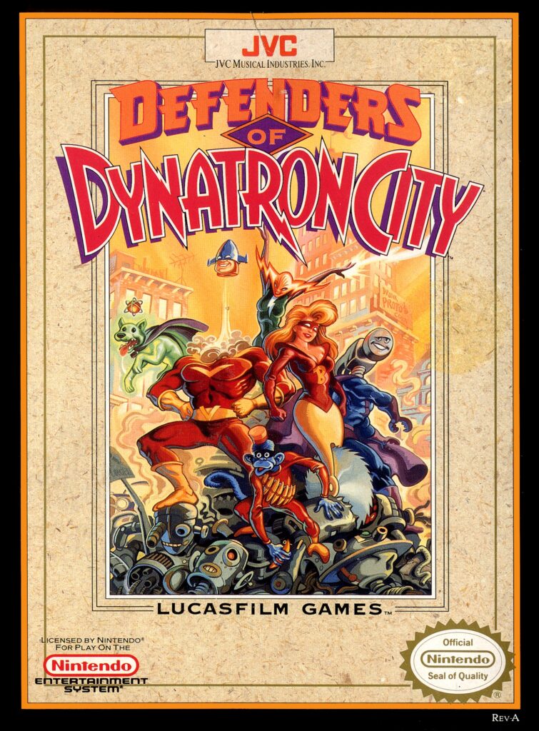 JVC and Lucasfilm teamed up to bring us the classic Star Wars trilogy on the SNES, and also… Defenders of Dynatron City? I wasn’t exactly sure what the game was about when I booted it up, but the name didn’t exactly set my loins on fire. Turns out, this is Lucasfilm Games’ attempt to create their own superhero game. There are six characters, and only a couple who are truly worth using: Jet Headstrong (I know, it’s awful) is a bulbous man who can fire his head off as a weapon; Radium Dog bites people because he’s radioactive and they’ll die and stuff; Miss Megawatt shoots electric “diagonals” also known as “bolts;” Toolbox, a giant robot with a hammer for a head and YES HE USES IT!!!! Buzzsaw Girl, my personal favorite, throws buzzsaws and instead of legs, she rolls on one giant Buzzsaw – she took her name to heart, by golly! Lastly, there is Monkey Kid, who throws explosive bananas, amusing no one but himself. The game is mostly an action platformer, set in a sort-of “open-world” map, before there was such a term as “open-world.” Each level has a grid with a number of streets, and after you clear out the enemies on each street, shops will open up and you can enter every one of them. There’s not much in them, other than scattered items, but it still impressed me. At the beginning of each level, you’re given tasks to accomplish – mostly kill enemies, collect items, that sort of what-have-you – and a time limit. Once your tasks are accomplished, you fight a boss and move on. It’s traditional stuff, but with the addition of an “open-world,” you can accomplish your tasks in any order, which was fairly revolutionary at the time, I’d imagine.
