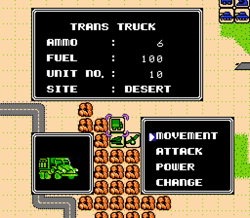 In Desert Commander, you’re at war with Iraq or Iran or one of those Middle-Eastern countries that has gas for 29 cents a gallon, I dunno. You have a certain amount of units you can control – bi-planes, trucks, tanks, infantry – and your goal is to meet your enemy head-on. Your enemy has similar units, but in five out of the six campaigns, their numbers will be larger. Each unit can move a limited number of spaces and has a limited amount of ammo, so mind your stats. You must also be aware of the terrain your units move onto. Anything that has wheels or feet are obviously slowed by more mountainous terrain. If you engage your enemy, you’ll be treated to a cut-scene of bullets, bombs, and explosions. The only real complaint I can think of is how slow your units move. Granted, this was the NES and sprites could only move as fast as they’re programmed, but in the current go-go age of the 21st century, it feels chunky. I’m not the largest fan of strategy games, as I’ve expressed earlier on this blog. I do have a soft spot for Advance Wars and to play a simpler version of it on the NES, sans anime graphics, is a joy.