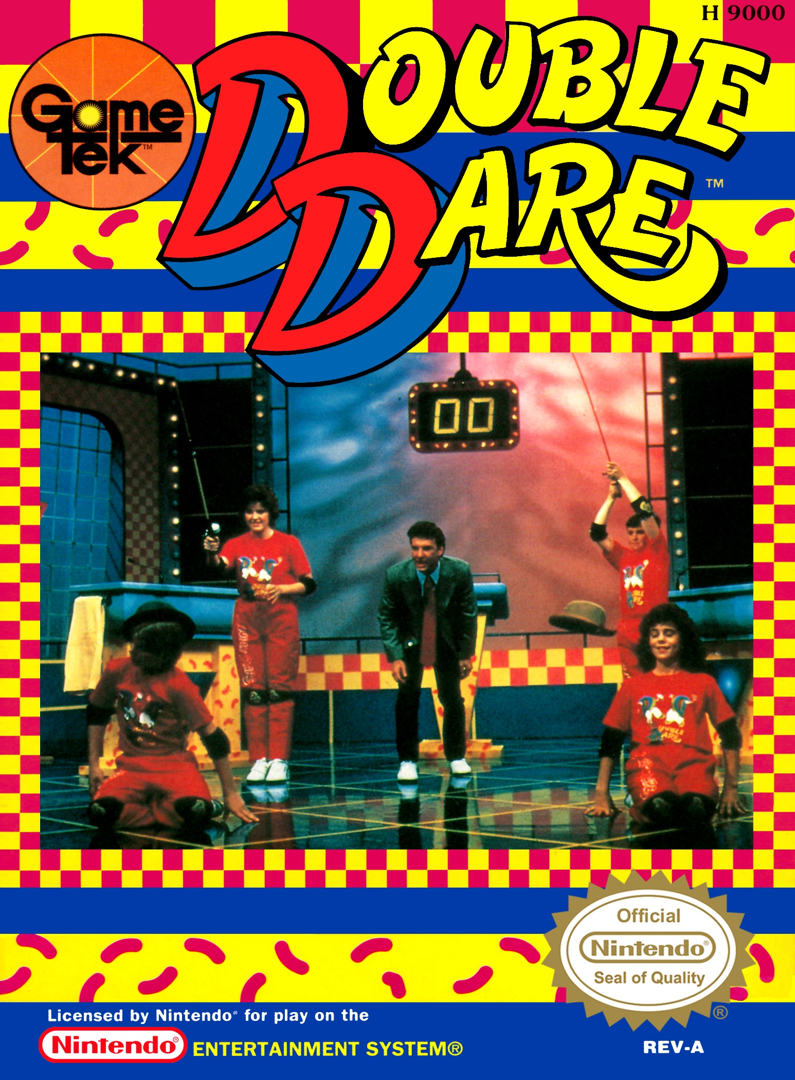 Remember slime, Gak, and any other number of “gross” products from the 1990s? Nickelodeon popularized the hell out of disgusting amorphous blobs, and Double Dare, an original Nickelodeon game show, made sure that kids got a lot of said disgustion heaved onto them. The show was an entertaining diversion, but it paled in comparison to other original Nickelodeon shows, like “Ren and Stimpy,” “Rocko’s Modern Life,” and even their live-action line-up, like “Salute Your Shorts.” It’s no surprise, then, that Double Dare feels like an afternoon’s diversion, at best; a time when you and a friend are sick of playing Contra or Double Dragon II or some other better two-player game. There are two sections of the game: a quiz show portion, and a “physical challenge” portion. The quiz-show is standard answer-the-questions fare. If you don’t know the answer, you “dare” the next team to answer it. If they don’t know an answer, they will “double-dare” you, and finally, you can challenge them to a, well, physical challenge. The latter part is where things get rough. If you are going to succeed, you have to line up your speed and your angle just right (via a speed/angle bar), but with the thirty seconds given, it can be quite the challenge. Should you have the patience for two five-minute rounds with your host Marc Summers and some doofy looking kids, the winners will go on to an obstacle course. Here, Rare throws out any sort of sense when it comes to controls: wiggling Left and Right moves your character, Up and Down moves your character up, and I throw the controller at the screen, breaking it and my tube television (why would I play 8-bit games on an HD TV? I’m not asking for pain). Double Dare dares you to give a crap beyond fifteen minutes of play. Will you accept the challenge?