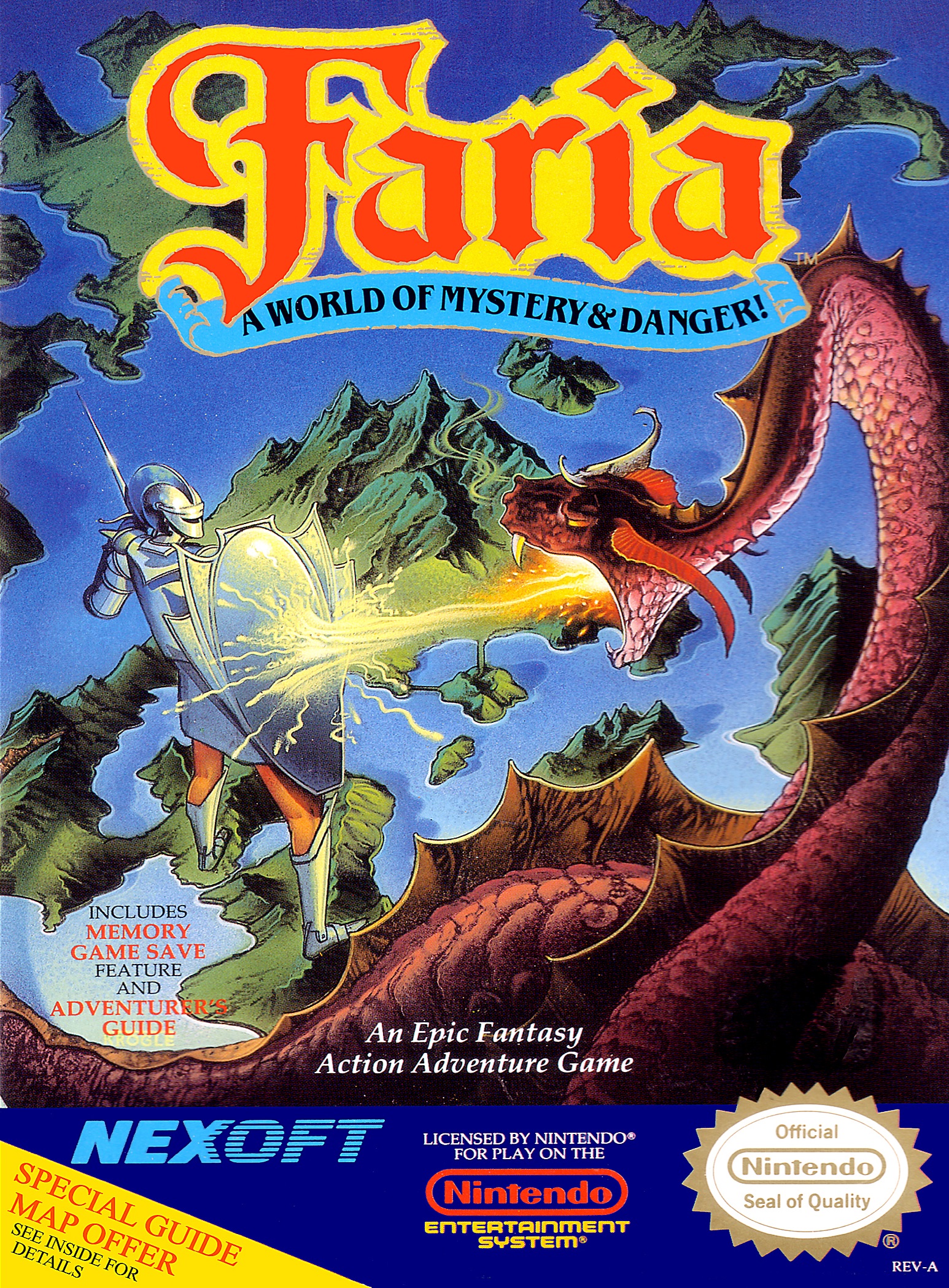 I enjoy old games, especially NES games. If I didn’t, then it would be downright masochistic of me to continue this blog, eh? That being said, just because I love old games doesn’t mean I necessarily love old mechanics, especially those used in early Japanese RPGs. I know, I know: I gave all four Dragon Warrior games “A” scores. I respect the Dragon Warrior/Quest series because they were some of the first RPGs of their kind, inspiring countless imitations. While I think the first couple are outdated, they’re still simplistic and charming if you care to invest the necessary time to complete them. Faria, however, is an RPG that desperately wants to ride on Dragon Warrior‘s coattails, with a dash of Zelda II apparel thrown in just ’cause. Unfortunately, said mixture is a bland, tasteless affair, not at all pleasing to one’s palate.