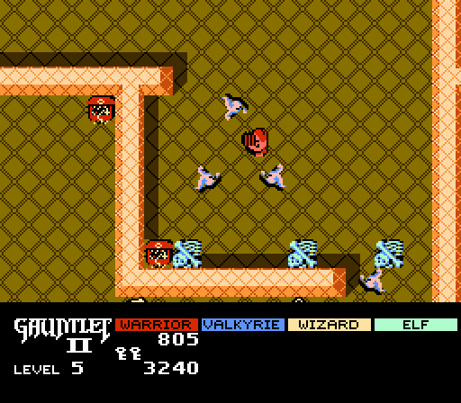 Perhaps I picked the wrong character this time? Perhaps the gameplay just didn’t hold up over a rushed sequel? Either way, Gauntlet II takes everything that was pure and wonderful about the original, and promptly squishes it under The Warrior’s blood-soaked heel. From the first level onward, something just feels a bit off. The graphics are more colorful, sure, and the controls haven’t changed, but the lack of music and addition of grainy voice samples really destroy any sort of moody atmosphere that the first one cultivated. Worse yet are the “power-ups” that seem to be more of a hindrance than a help. The “transportation” one is the biggest offender. Going through walls seems like a cool idea to help you avoid enemies, but it also prevents you from collecting other items, like treasures and HEALTH, for crying out loud! The levels also don’t seem as well-made. They’re larger, less interesting, and not nearly as challenging (although there are more of them – 100 levels, to be precise). Perhaps the reason for the levels being larger is that, with this sequel, four-player support has finally been added. I’d imagine it’s the best way to play the game. Playing by myself, I experienced nothing but sorrow, emptiness, and a real rage dump for the newer features. KHAN!!!!
