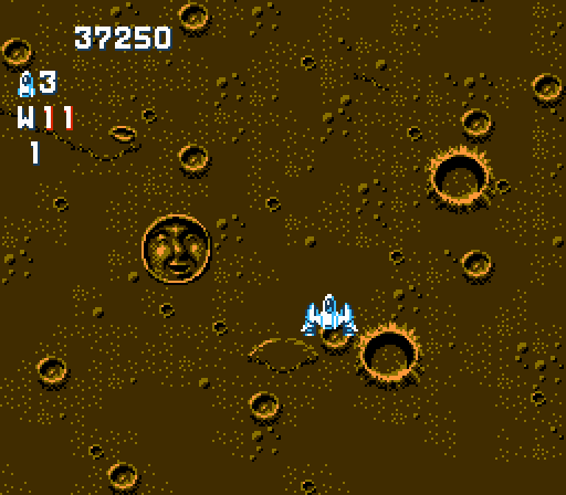 The good shmups are never that simple, though, and neither is Gun Nac, although its decided value depends on your fondness for old shooters. Like many other NES shmups, Gun Nac starts off slow to get you used to the various weapons dropped by enemies, but by the second level, the difficulty ramps up quickly. I acquired four lives (for a total of six) and a bad mutha ship in the first level, only to have it all steam rolled away from me by the denizens of the horrible Lava Planet i.e. the second level. The difficulty level, the relentless speed, and the variety of weaponry make this game a solid shmup, but outside of those standard “solid” requirements, there’s nothing here that sets this shmup apart from, say, Gradius or Life Force. The different planets you visit are all pretty bland, graphically speaking, as is the design of the ship and the enemies. Granted, when you have your favorite weapon charged to the max and you have two additional wings blessing you with extra firepower, all that matters is blowing things to oblivion. Similar to Gradius, though, should you die in the heat of battle, good luck regaining your ground. Pea-shooters don’t cut it when you’re trying to fight volcanoes, oil refineries and random flying monstrosities. Despite the sub-par visuals, all classic shmup fans should try this game, if only to say “Huh. Now I can say I’ve played a game called Gun Nac.”