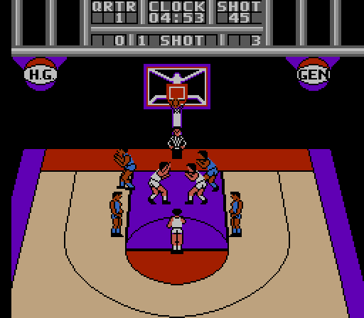 Whatever kind of strange, logic-defying basketball moves you hope to pull off in Harlem Globetrotters for your NES won’t be found, save for a strange bouncing half-court maneuver you can do by pressing ‘Start.’ Other than that, this is run-of-the-mill basketball at its laziest. I’d call it ‘arcade’ style basketball, but when I think of ‘arcade’ basketball, I also think of fun. It’s not a ‘sim,’ either as it lacks stats and micro-management. What it does excel in is frustration. Largest case in point: when you have the ball, you can naturally pass it to other team members; however, when the other team has the ball, you can not switch to different team members. What? How on earth are you to stop the opposing team? Basically, you hope to God that whoever was last selected on your team is close to the guy who has the ball on the other team. Even in the NES era, this gaffe shouldn’t have occurred.