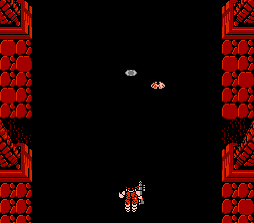 What’s changed: Paul (or Vince) must have been hittin’ the protein powder pretty hard because his sprite is incredibly large. The alien enemies are larger and faster than previous enemies as well, which means the chances for you to get hit are much greater. Despite your increased girth, your life bar is as puny as it is every was, and you still only have one life. The controls are not your friend either. While the slowdown is thankfully missing here, the controls account for your larger size and so you move slower. Also, the D-pad still feels clumsy, compared to the arcade’s original rotary controls. To summarize: because you are large (but slow and weak) and your enemies are large (and strong and fast), you will die often and you will have to start over from the very beginning every time. This ensures that you turn this installment of Ikari Warriors off more quickly than the previous one. Paul and Vince may have aspirations of turning the galaxy’s denizens into furious mulch, but in order to do that, they need to figure out how to move and aim accurately. Godspeed, boys.