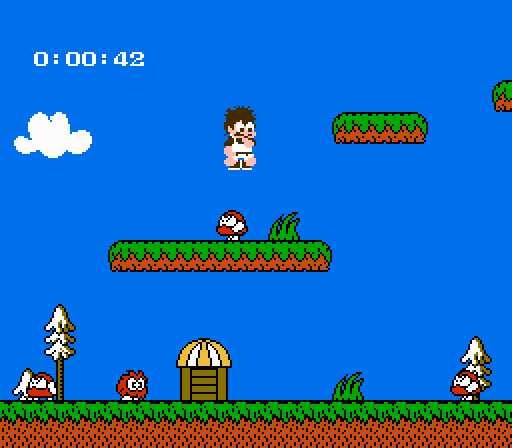 I don’t care how kool this kid is or how wonderful his seven herbs may be. His game stinks like yesterday’s patchouli. This comes as a bit of a disappointment, frankly. I would much rather Kid Kool be fun, with its quirky Japanese stereotypes and Mario-esque gameplay, than Kid Klown, a damnable-looking, but surprisingly enjoyable game. But I don’t make the rules or the games, so I’m stuck with Kid Kool‘s offensive, sluggish controls and boring level structure.