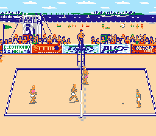 Beach please, Konami must have a mental disease! That crazy monolith of a company teamed up with Ultra Games (psst, they’re the same company – don’t tell Nintendo!) to give NES players perhaps the greatest volleyball game for the NES. When this game was released, the go-go ’90s were just around the corner. Kings of the Beach celebrates the end of a decade with some sun, shorts, and a whole lotta sand in your pants. Start off with a quick 2-on-2 match or, if you’re feeling frisky, hit up a tournament. The tournament is where the true money lies. Each stage will take you to different locales and face you off against different tough guys who think they have what it takes to best your almighty mack daddy team of Sinjen Smith and Randy Stoklos. The gameplay is the same whether you’re playing a match or a tournament: you serve, spike, block, and set up moves with your other partner. You can even argue totally bogus calls against the ref! Obviously, in a tournament, Smith and Stoklos need to bring their ‘A’ game. Might I suggest busting out the NES Four-Score to practice with some bro-dies? Virtual volleyball arguably doesn’t get much better than a bunch of dudes sitting around an NES. Some burgers, some beers, a few laughs. Just don’t go looking for pixelated chicks. This ain’t Queens of the Beach.