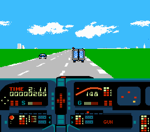 After reading this review I watched a Youtube video and it looks like a first-person version of Spy Hunter. Judging from the comments, the speed at which gas runs out pretty much kills it. Such a shame, it seems like there was some potential.