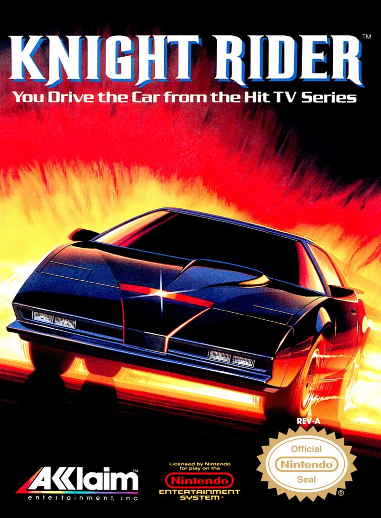 Disclaimer: I can’t relate to anyone’s fond memories of David Hasselhoff’s adventures with a snooty talking car, as the show went off the air when I was a baby. I can say that, compared to other NES racing games, Knight Rider comes in somewhere around the middle. Believe it or not, this really hassles my hoff, as there’s a lot to admire about the game. In Mission mode, you have to keep track of your gas meter, time limit, and shield, on top of avoiding all oncoming traffic, especially the red cars/trucks which will shoot at you. You also have a gun and a jump feature, both of which work well. All of these mechanics add much-needed depth to the traditional NES racing style, but unfortunately, Acclaim only gets about half of them right. Gas runs out far too quickly, and while you can acquire more by shooting special yellow item cars/trucks, you’re just as likely to get more time or another item you probably don’t need. Your shield is likewise too weak, considering you’re driving KITT the Wonder Trans-Am.  A couple hits and KITT will explode, leaving nothing but a charred corpse, surprisingly well-coiffed hair, and shattered dreams. The gun works ok if you’re at a distance, but don’t shoot the devilish red cars up close unless you want to get pelted with bullets. The good news is, in Drive mode, you’re free to simply drive through the levels without worrying about enemies. Unfortunately, you still have to worry about gas, time limits, etc. which seems to defeat the purpose of having a drive mode. Then again, KITT wasn’t made to “drive.” He was made to serve death to legions of terrorists, while spouting witty quips to hide his true masculinity. Or something. I never watched the show.