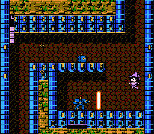 First of all, let me express how terribly disappointed I am that this game is not called Krion Konquest. “Conquest” is practically begging to begin with a “K,” I tell you! Begging! Anywho, it’s taken until the ‘K’s but here we are with our first full-blown, unapologetic Mega Man clone. Oh sure, you’re a witch instead of a Rockman, and you begin with a set amount of powers instead of earning them as you go. But from the witch sprite that is very obviously a morphed Mega Man, to the shoot-and-ask-questions-later game mechanics, to the annoying timing of the enemies, to the powers that you have (instead of using Rush as a step or a jet, you have… a broom), to the obnoxious difficulty, to the pseudo action-packed music… well, I could go on.
