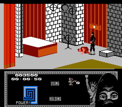 Granted, quickness is not the point of this game. The point is to collect items from around each level and use them at other parts of the level, while either engaging or running away from enemies. But I’m a ninja, right? Shouldn’t I be fast and deadly, if not stealthy? This supposedly “last ninja” is none of the above. The game gives you lots of weapons, should you look for them, so there’s a sense that you’re supposed to be able to fight well. Still, my advice is to avoid as many enemies as possible. Due to the game’s perspective and all-around wonkiness, it can take multiple tries to line up your attacks with each enemy. Should you decide to beat down your opponents, be aware that it takes depleting their health bars twice to fully get rid of them. Some of them also have shurikens that can one or two-hit kill you. Enemies, controls, perspective, all of them suck, and yet, I was drawn into this game for its unique take on the ninja sub-genre. Should you decide to plunge into the game’s depths, you’ll be rewarded, but unless you’re committed, I wouldn’t recommend it. I certainly respect what The Last Ninja was trying to achieve, but on a system with Ninja Gaiden II and Shadow of the Ninja, it can feel slow and outdated for those who aren’t prepared.