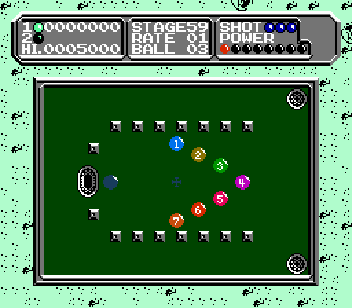 So what do Lunar Pool‘s moon-based innovations bring to the table, you ask? Well, you can control the friction on the tables before the game even begins. If you want to weigh the balls down with so much needless gravity and make everyone hate you, turn up the friction. If you realize that you don’t need to waste gravity’s and everyone else’s time because you’re on the moon, turn down the friction so the balls can glide and slide across the table. Or if you want to play a boring game of Earth Pool, keep the friction on the standard setting. Many of the stage backgrounds have moon-based settings, always a plus when you’re trying to impress that special someone. That’s pretty much it. You can play by yourself, against a computer (not recommended), or with a friend (highly recommended). Despite the lack of game options, it might be the best game of pool on the NES and it’s even better when played on the moon.