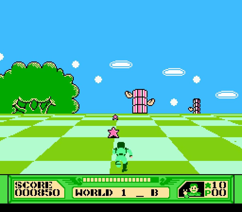 The checkerboard pattern is the simplest pattern used to envoke a sensation of depth in a 2d world. This game is tough, but its pretty addicting. For an nes game it really gives a good sense of depth