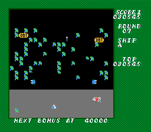 Millipede is one of those “before-my-time” romps that I’ve never been able to get into. You inhabit a young warrior seeking to destroy any and all bugs that roam in dark wastelands, particularly the multi-segmented nightmares known as Millipedes. Unfortunately, you’re given a very limited space in which to destroy them. Three quarters of the on-screen action take place in the dark, while your warriors space is gray and small. Mushrooms are scattered around by the dozens, and you’ll have to shoot through them in order to destroy the millipede and advance to the next level. For added fun, when you shoot the different segments of the millipede, they turn into mushrooms themselves. Sunrise, sunset, I suppose. In the meantime, spiders and other creepy crawlies emerge from the forest, begging for your weapon’s attention. There are DDT bombs you can shoot to blow up segments of the millipede, but since the millipede moves like greased lightning, it can be a gamble. The action is incredibly fast-paced, so much so that it’s impossible to catch your breath. After you destroy the millipede on one stage, the game changes the color palette and you’re suddenly on the next stage, shooting up another millipede. But most old games are about points, right? In that sense, Millipede succeeds as a quarter-robbing time-stealer. Just don’t go looking for any more than that.