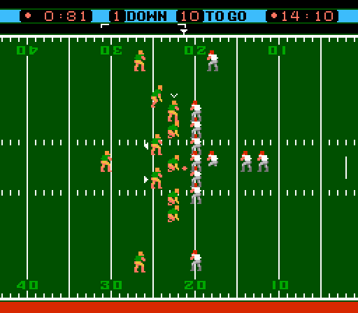 But whatever. ARE YOU READY FOR SOME FOOTBALL?! Unlike NES Play Action Football, which was only sponsored by the NFLPA, NFL Football makes that extra leap to actually be sponsored by the NFL. This means basically one thing: you can pick your favorite teams by name. No more choosing San Francisco or Denver or whatever. Now you can pick the 49ers and the Broncos.