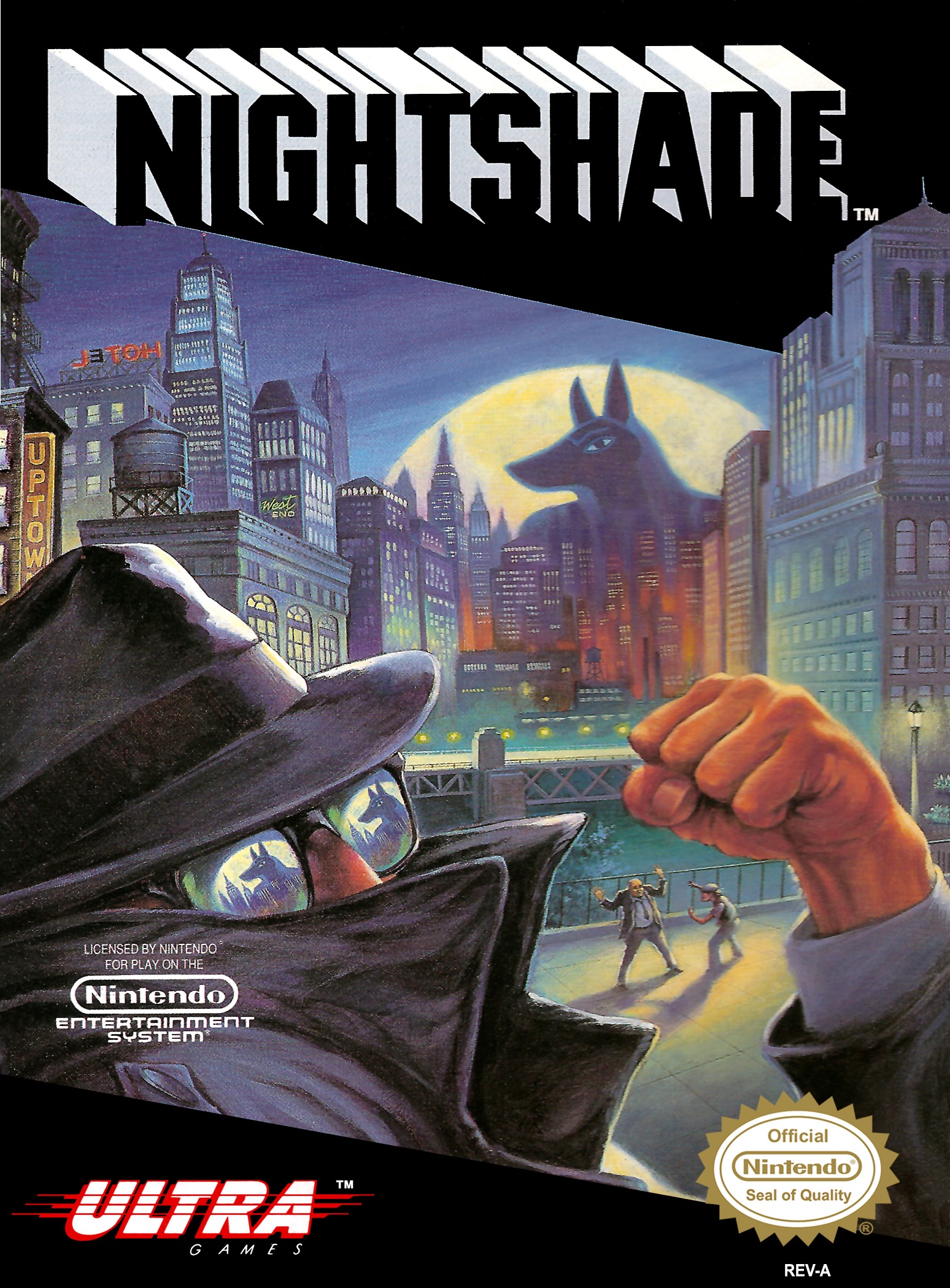 Despite taking its name from a toxic flower, Nightshade truly is a breath of fresh air in the NES library. It’s a point-and-click adventure game, with an overly-humorous tone akin to the Monkey Island series. Basic plot: Nightshade a.k.a. Mark Grey is a detective/vigilante trying to take down Sutekh, an Anubis creature, and other crime lords of Metro City, one clue at a time. Like any other point-and-click adventure, the game’s non-linear, with quite a few sidequests to occupy your time. Metro City feels overwhelming at first, but the more you wander around, the more you get accustomed to its back alleys; still, probably wouldn’t hurt to make a map. In addition to looking for clues, Nightshade can fight people and creatures. The fight sequences don’t control perfectly, but they’re a nice break from just perusing Metro City. Should you “die” in a fight or elsewhere, you’re instantly thrown onto a trap of Sutekh’s. You are able to escape four consecutive traps in a row, if you figure out how to do so. By the fifth trap, it’s game over, and of course, if you fail to stop any of the previous traps, game over, as well. Nightshade isn’t that strong, so it’s a clever way of giving you a few more cracks at the game (especially since there’s no save feature). In addition to his health meter, Nightshade also has a popularity meter, which can be raised or lowered by taking down enemies or doing sidequests for people. The higher your popularity meter, the more the citizens of Metro City will like you and the more access you’ll be granted to private areas. The popularity meter, in particular, feels ahead of its time, like a feature that would be used in today’s modern games. Nightshade is a lighthearted noir with memorable characters, unique features, and an enveloping atmosphere. The NES could have used more games like this.