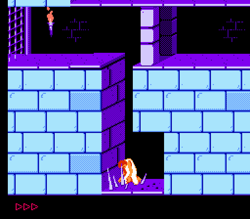 Prince of Persia may have been a quality Apple II game – “groundbreaking,” “innovative,” and other high-falutin’ adjectives – but it’s a heaping bowl of weaksauce on the NES. The goal remains the same as the computer version: make it out of the dungeon’s thirteen levels within an hour and save the princess. There’s puzzles, guards, skeletons, trap doors, spiked floors, large spine-snapping drops, and on top of it all, terrible controls to ensure dozens of untimely deaths and swears, swears, swears! Left or Right makes you run, but instead of stopping on a dime when you release the button, you trip to a halt. Even if you’re running towards a pit or a trap door and you attempt to stop, the jerkiness of the prince’s halt will likely kill you dozens of times. Because of this terrible design flaw, running is pretty useless in Prince of Persia. Tiptoe with ‘B’ to get around and jump with ‘A’ when you approach a pit. If all you do is tiptoe and jump, you might live to see later levels. Sword fighting is awkward and requires more luck than skill.Prince of Persia isn’t meant to be a high-octane action game, thus a unique control scheme is to be expected. Unfortunately, the game calls for preciseness in every action you make, and the sloppy controls seem to go out of their way to hinder you. That’s not magic. That’s witchcraft.