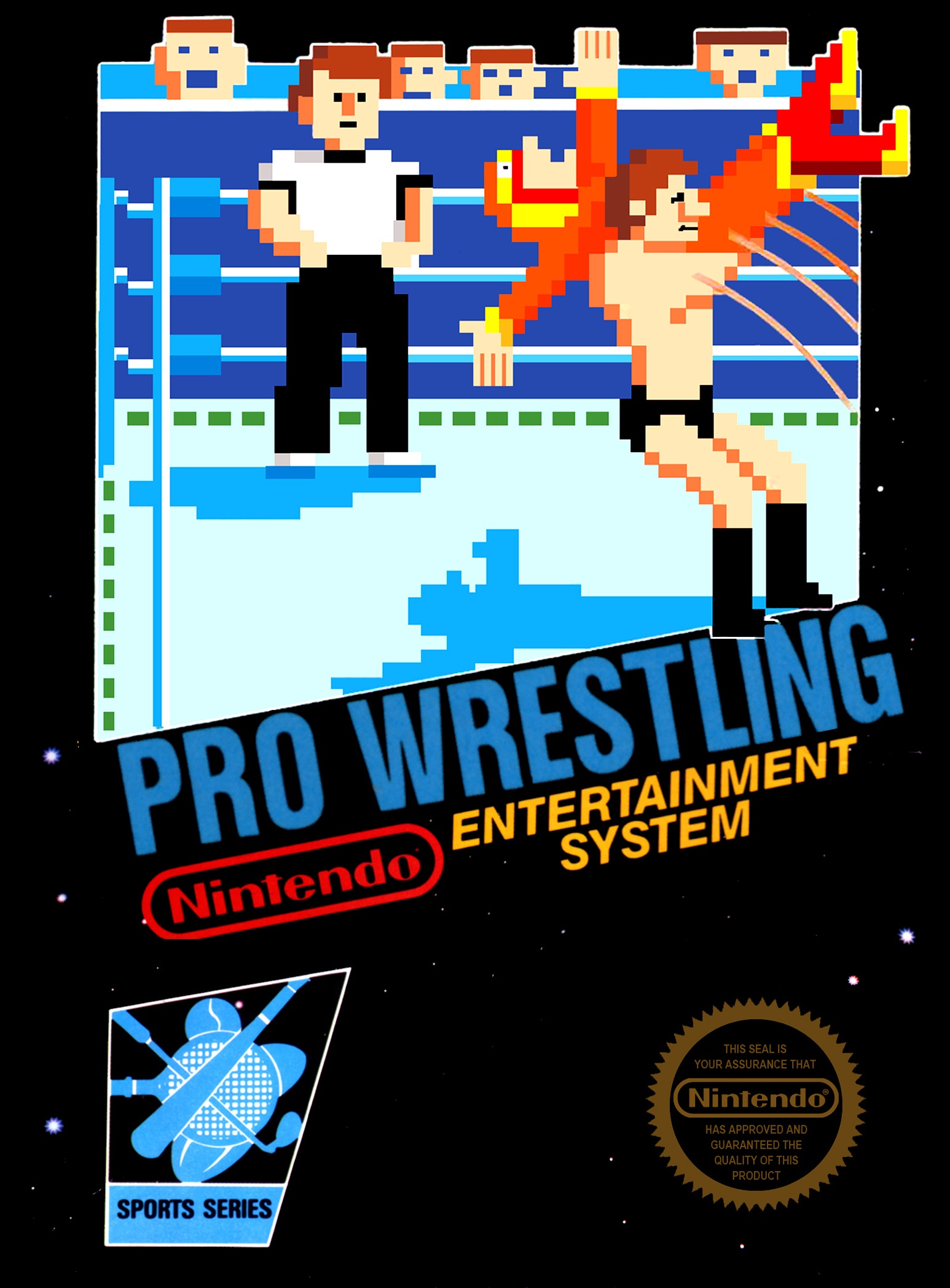 If you’re hoping to be the best wrestler who ever was, you’re in it for the long haul. You start out ranked fifth. With each match you win, you move up and eventually battle King Slender, the VWA (Video Wrestling Association) Champion. Defeat him and you get to carry the VWA title proudly!… through ten more matches, twice with each of the five selectable characters. After these matches, you will fight Great Puma, supposedly one of the hardest boss battles on the NES. I’ve never gotten to him personally, but he sounds about as tough as Tyson on Punch-Out!!; greenhorns and weak sauce jabronis should shut their mouths and stay in their seats. If each Nintendo-produced sports game were to wrestle in the VWA, Pro Wrestling would come out on top. Whereas Baseball and 10-Yard Fight feel sterile and hollow (despite my love for the former), Pro Wrestling exudes personality and character. A winner is it.