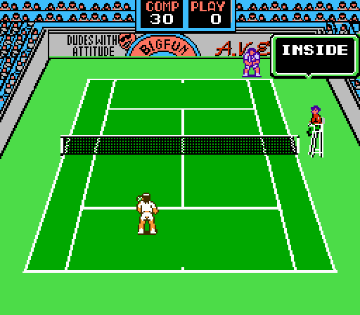 Deluxe Tennis II is yet another review that hearkens back to the unlicensed multi-cart, Maxi-15. Nothing has changed. The tennis at the heart of the game is decent. Players move quickly, the computer AI isn’t busted, and it’s possible to actually hit the ball over the net. There are six racially diverse tennis players to choose from, each with a supposed special ability. Yet, when the players move to the court, both your character and the computer look exactly the same. Always. I picked three different people, and they all resembled a white person with white shirt and a white shorts. They don’t play any differently either. Charly might be an expert at drive, Chang an expert at chop (‘groan’), but you wouldn’t know it to take them onto the court. As for courts, you have your pick of grass, clay, and hard. I thought I could feel a slight difference on the grass court, but given the illusion of choice found on the character select screen, it wouldn’t surprise me to learn that all three courts handle the ball the same. Deluxe Tennis II had more purpose on a cartridge that contained other games, but as a stand-alone tennis experience, it’s mediocre. Double Fault II!