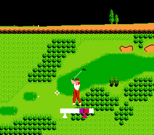 I’m not sure pro golfers would scratch their buttocks in public with their clubs, but I know I might be tempted to do something like that. My physical openness and my distaste for expensive mustard yellow polo shirts both dictate that I should never be a golfer, on the actual or virtual green. Bandai Golf: Challenge Pebble Beach appears to offer us never-shoulds a gentle approach to “the links,” but said approach is really shenanigans in disguise. The game begins with you selecting your handicap (purely for stat reasons, so lie all you want!), then hitting the one and only course available to you, Pebble Beach. The controls take some adjustment, granted, but the swing meter is one of the best I’ve ever seen featured in a golf game for the NES. I was swinging like the pro I knew I wasn’t within a couple shots. Once you get close to the hole, though, Challenge Pebble Beach expects you to fend for yourself. Up until this point, the game chooses the proper clubs for you, but if you don’t know what you’re doing, you’ll be stuck trying different clubs, seeing what works (and absolutely ruining your flawless handicap!). If you have the patience, it can still be enjoyable, thanks to the fantastic swing meter. Otherwise, Bandai Golf is a golf game for golfers, not shlubs like me who can’t be bothered to iron tan slacks.