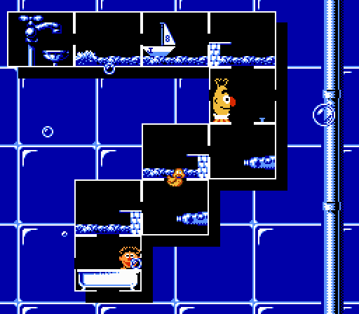 “Ernie’s Big Splash” uses intricate plumbing layouts to reunite Ernie with his rubber ducky. There are a number of layouts to choose from, but only a couple will allow the ducky to progress forward in any given direction. Once all of the plumbing is connected, the ducky will swim adorably to Ernie’s bathtub. Ernie will play with it for awhile, beside himself with joy, before quickly forgetting about the duck and losing it again. Then “Ernie’s Big Splash” begins anew, forever and ever, until you reset and go play “Letter-Go-Round” again. My, that Cookie Monster is a fine dancer.