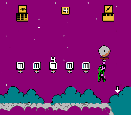 Countdown gives you two options on the main screen, Hop or Run. Both are sinfully easy, though choosing Hop basically allows the game to play for you; more on that later. You’re then presented a ferris wheel composed of the numbers 1-10. As the wheel spins, select a number. Whatever number you pick is the number you’re supposed to look for in the following level (I use the term “level” literally – there’s only one level in the entire game). Within the level – which I believe is just a Sesame Street walkway – there will be an assortment of numbers floating above your head. Find the numbers you selected from the Ferris Wheel and jump to hit them. Do this as many times as possible (the Count cackles gleefully every time), until the level ends. If you select Hop, the Count will hop to the next letter he sees every time you press right on the directional pad. All your poor, lazy eyes need to do is watch out for the number you selected and jump to collect it. Select Run and you’ll have the arduous task of walking the Count to each number. There’s two bonus stages that you can reach by grabbing onto a floating question-mark balloon in the level, but there’s no point to them. Both bonus areas involve collecting the same number you’re looking for in the main level.