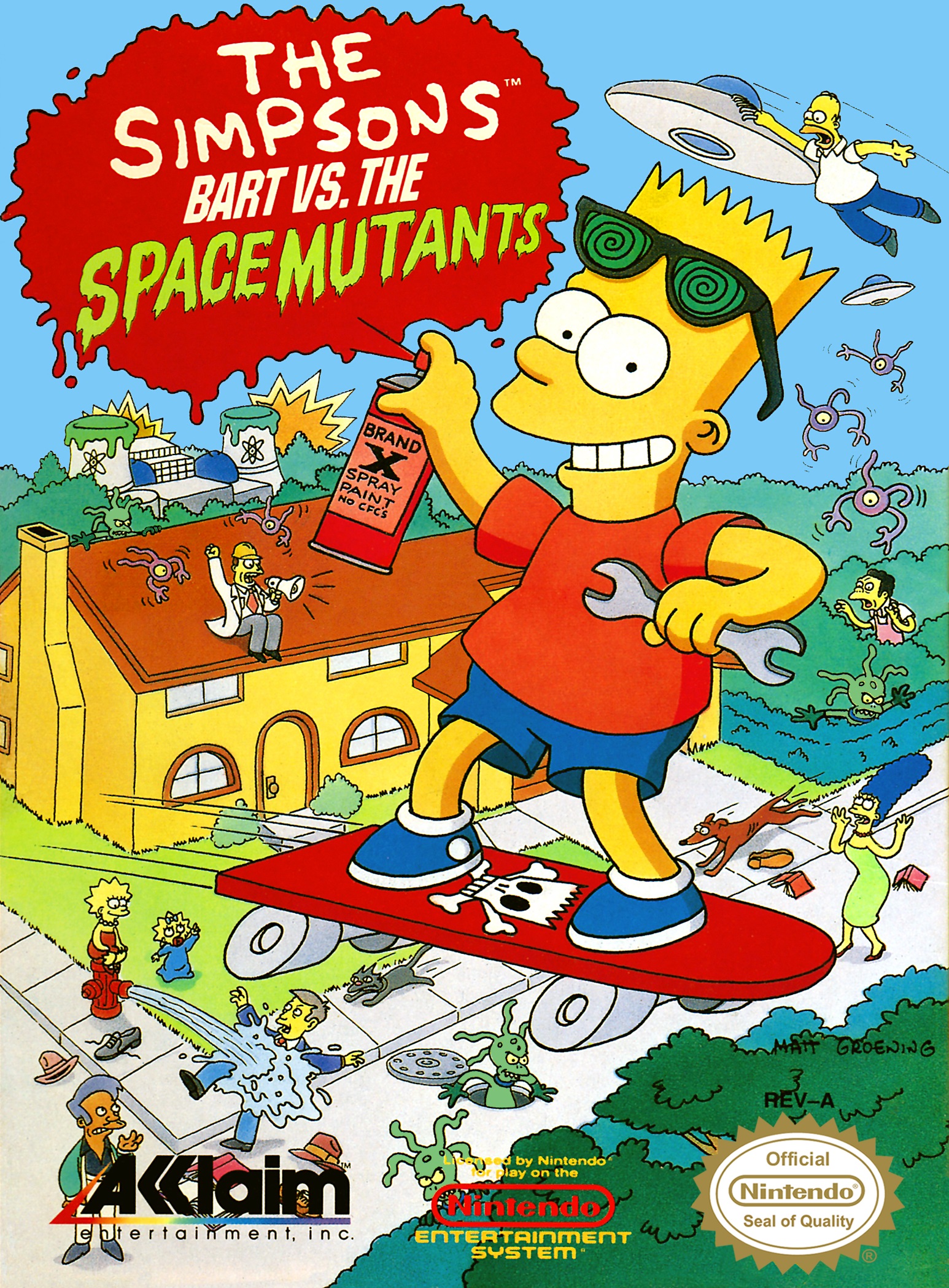 I kinda wonder what Matt Groening thought of the Simpsons NES games. I’m guessing he either peered over a giant pile of money and just said “Heh, how about that” or he totally approved of their awfulness for the ironic humor.