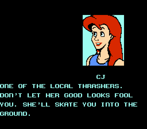 You think you know fear? Try taking down the mayor’s wife with a paint gun without thrashing and burning. Pulling off a fast trick like that – one of several in Skate or Die 2 – will elevate you from “scrub” to “shot caller” in 4.2 seconds or less! Yes, Skate or Die 2 eliminates the first game’s skateboarding events for skateboard-related platforming and over-the-top voice acting (the theme song is a work of horrible genius). No more Downhill Race or Freestyle on a half-ramp (though there is a separate ‘Ramp’ option on the title screen) within the game proper. Here, you’ll be collecting fast food, tapes, and CDs to trade for new boards and skateboarding tricks. You’ll be delivering items back and forth between different locales in the mall. You’ll be finding the plans for a new ramp on the boardwalk. Why would you want to do any of this in a skateboarding game instead of actually skating? Because the skating-heavy original game wasn’t that hot. Problem is, neither is the sequel, and the blame mostly lies, once again, in the controls.