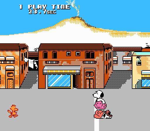 There’s nothing silly or spectacular about Snoopy’s first sports game, a multi-event exercise that’s over before you can say “Good grief!”. Choose from one of six events – Pile of Pizza, Sack Race, Overboard, Pogo, Boot Throwing, River Jump – or play all six at once. It’s better to play all the events together for two reasons: 1) each event will take you only about five-to-ten seconds to complete; and 2) if you select only one event and you complete it, but you don’t “try again” when the game asks, it boots you back to the title screen; best to avoid the hassle. Most of the events are nonsensical: Pile of Pizza has Snoopy carrying a large stack of pizzas slowly to a finish line; Overboard has Snoopy and his creepy pervert counterpart playing Urban Champion in a boat; Sack Race and Boot Throwing are as hobo as they sound. Only Pogo and River Jump make marginal sense in the “sports” context, but the movements – pogo-ing and jumping, respectively – are difficult to execute. The events themselves are inoffensive, but once they’re over, they’re over, and the game has little left to offer. If you get a certain score at the end of your first playthrough, you can play through the game twice more (assuming you get higher and higher scores) before it awards you a gold medal – but really, who cares? Snoopy’s Silly Sports Spectacular doesn’t look, sound, or control poorly, but its lack of content (it’s hardly a game at all) renders it an inconsequential waste of time.