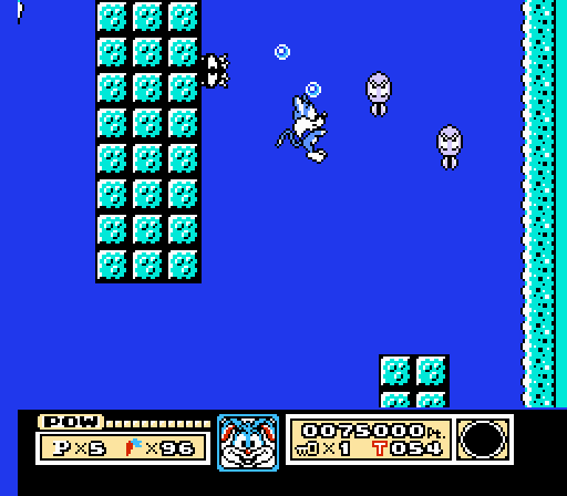 Babs Bunny has been kidnapped by Montana Max, and only Buster and associates can save her! There are six worlds: the Hills, the Wetlands, the Trees, the Junkyard, Wackyland, and Montana Max’s Mansion. The first four worlds have three stages each while the last two worlds only have one stage. Before the beginning of each stage, Buster can choose one of three helpers: Plucky Duck, Dizzy Devil, and Furball. Each of them are useful at different times, depending on the stage layout. Plucky swims well and flies for short bursts of time. Dizzy Devil turns into a tornado, destroying everything in his path. Furball climbs walls and jumps the highest of the three characters. Though you start off each stage playing Buster, find the stars hidden in balloons around the stage to transform into the secondary character. After the end of every second stage, Buster has to avoid Elmyra’s advances for a limited time until an exit door appears, while the end of every third stage holds a boss battle. Nothin’ fancy, but it works.