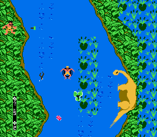 The concept of Toobin’ is one of the all-time best in video game history. Two bros named Biff and Jet embark on a tubing adventure around the world and beyond. They start off on the Colorado River, but before long, they’re rollin’ down the Nile, the Amazon, River Styx (yup, in the underworld), Jurassic River, and even up to Mars. With a cold sixer in their hands at all times? Bro! Cans are literally everywhere on these rivers, both for Biff and Jet’s consumption and as weapons to huck at angry river denizens. And there are a lot of them: hillbillies, banditos, dinosaurs and more all want to see the boys fail at their tubing expeditions. While it’d be nice to gently float down the river, brew in one hand and babe in the other, that’s not in the cards. Besides the shore dwellers, there’s also plant life, raging rapids, and warping whirlpools to watch out for. Given the flimsy nature of most inner tubes (even professionally made ones), one hit and you’re sunk. Thankfully, Biff and Jet are fully acquainted with the controls of their tube. Never do you feel like you’re gonna lose control of them and wipe out. Toobin’ is an arcade port, and while it doesn’t look the greatest (borderline Atari 2600-graphics, here), the laid-back, hilarious nature of the original game still shines through. KICK IT.