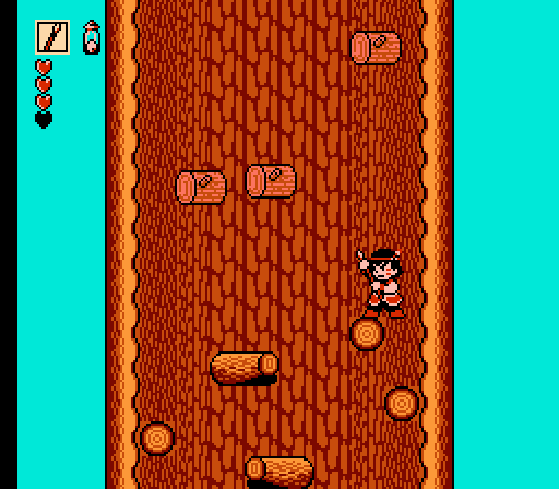 Whomp ‘Em isn’t as polished as the Mega Man series, but I’d wager fans of the Blue Bomber would praise this game’s difficulty. One life (unless you find extra lanterns hidden throughout the stage), a few hearts (collect a lotta gourds from fallen enemies to get more hearts), and unlimited continues are Soaring Eagle’s lot. My time with the game proceeded as follows: play through a stage, get hit a few times, have two out of five hearts remaining, make it to the end boss and die after they hit me once, then use a continue to start over and begin the cycle anew. Progression is possible, but one must carefully go through the levels and collect as many lanterns as they can find. After the introductory level and the level known as Sacred Woods, the difficulty increases significantly.