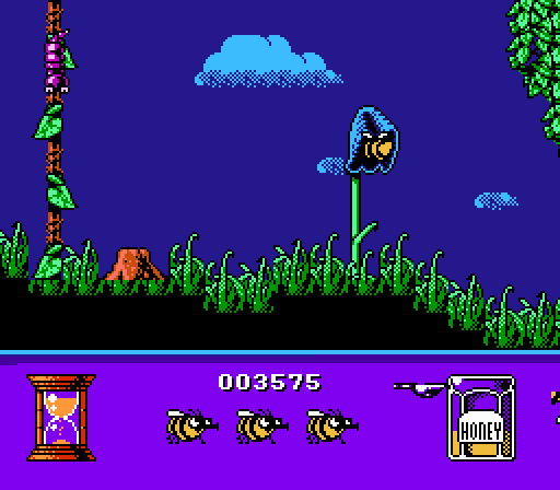 The game contains twenty-four levels, split up into two twelve-level sections for maximum pollinating greatness. Seriously, I’m shocked that this game entertained me. It’s simple, addictive fun in short bursts, and it controls well: two of the elements to look for in every NES game. Not surprisingly, it hasn’t gone down in the NES annals as one of the greats, but it’s certainly worthy of your time. Not since Dino Riki have I been as pleasantly surprised with a potentially crap game.