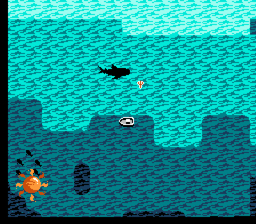 Your mission, should you choose to accept it, is to capture the Blue Marlin and become a AA ranked fisherdude across America, and possibly, the world. The game’s presentation is leagues better than Black Bass. The intro music and animation of waves tries to lend the game an exciting feel, and it almost works; especially when the blue Marlin jumps out of the waves and tries to skewer you through the screen. You input your name (Marley McBrah), pick a location in Florida, and you’re off to catch a Marlin. Unlike Black Bass, where it felt impossible to find a fish, there are scores of fish traveling in each location. The lure hangs off the back of your boat, and you drive the boat around the fish so the lure lands in their circle. Once you engage in battle with the Marlin, it becomes a wha? situation, as in, what am I supposed to be doing? Pressing “B” either tightens or loosens the line, but that didn’t help. I assumed pressing “A” really fast would bring in the fish, but when that didn’t work either, I tapped left, up, right, down on the directional pad, all to no avail.