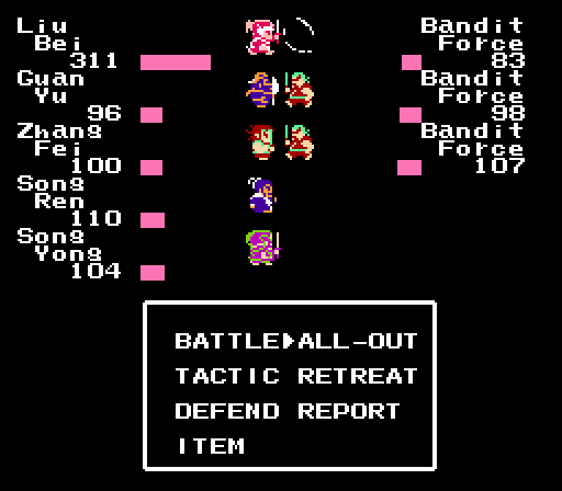 Destiny of an Emperor mixes the battle system of Final Fantasy with the history lessons of Romance of the Three Kingdoms. The result is pure zang! What separates Destiny from other RPGs and Koei strategy games is its accessibility. Fight generals in random battles, then recruit them in the local towns. The battles are an engaging blend of melee and tactics, while amassing an ever-increasing army of generals (150 to recruit, 70 to travel with, 7 in your main battling party) is more addicting than one might think. The best RPG on the NES.