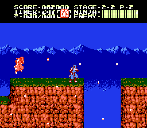 The Ninja Gaiden series provided a cinematic scope rarely found in NES games of its day. It’s the cut scenes, the rollicking soundtrack, the varied environments – but mostly, the cut scenes. The lighting, the mood, the atmosphere, and the direction are still first-rate. Ninja Gaiden II is a top-shelf action game in its own right, but I doubt I’d remember it as fondly today without dem cut scenes.