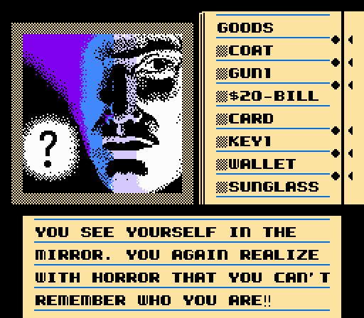 One detective’s drunken quest to remember his identity also happens to be the best adventure game on the NES. Like Shadowgate or Uninvited, there’s a great deal of trial-and-error in the choices you make. Deja Vu takes it easier on the player than the aforementioned, though. That detective’s been through enough, as is.